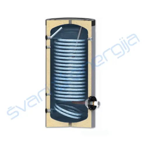 — Tūrinis vandens šildytuvas SWP N 500 su vienu didelio ploto šilumokaičiu.